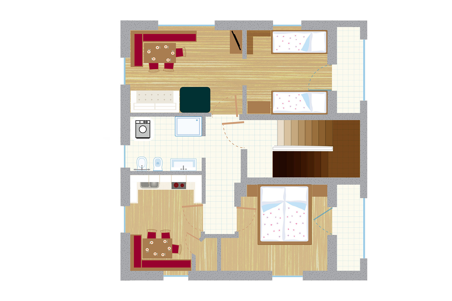 Die Wohnung für 2-4 Personen, bestehet aus: