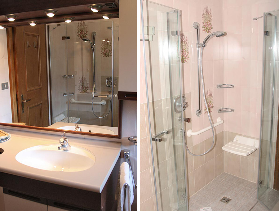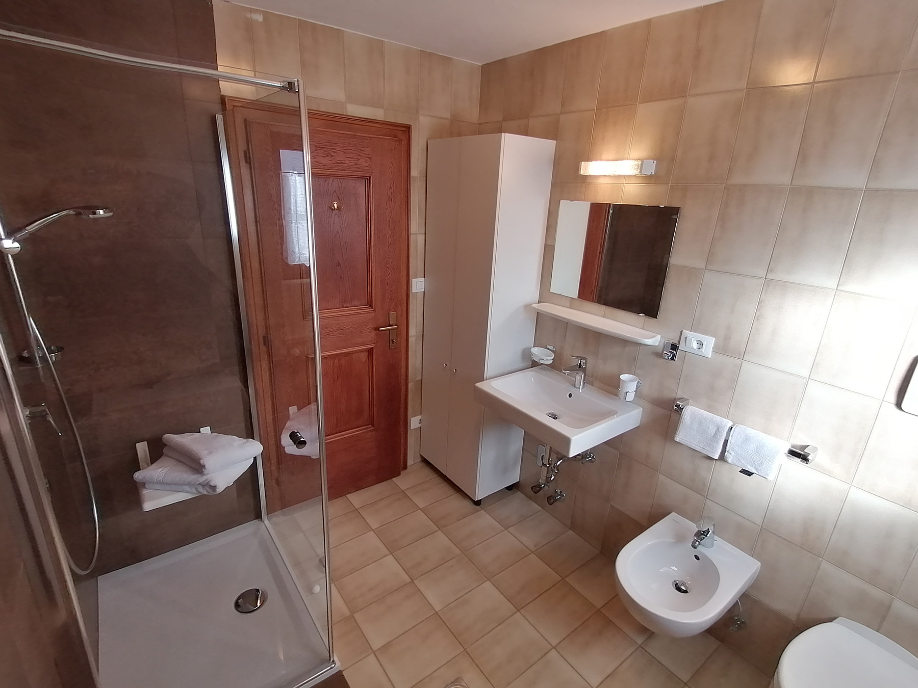 - ein Badezimmer mit Dusche, Bidet, WC und Waschmaschine